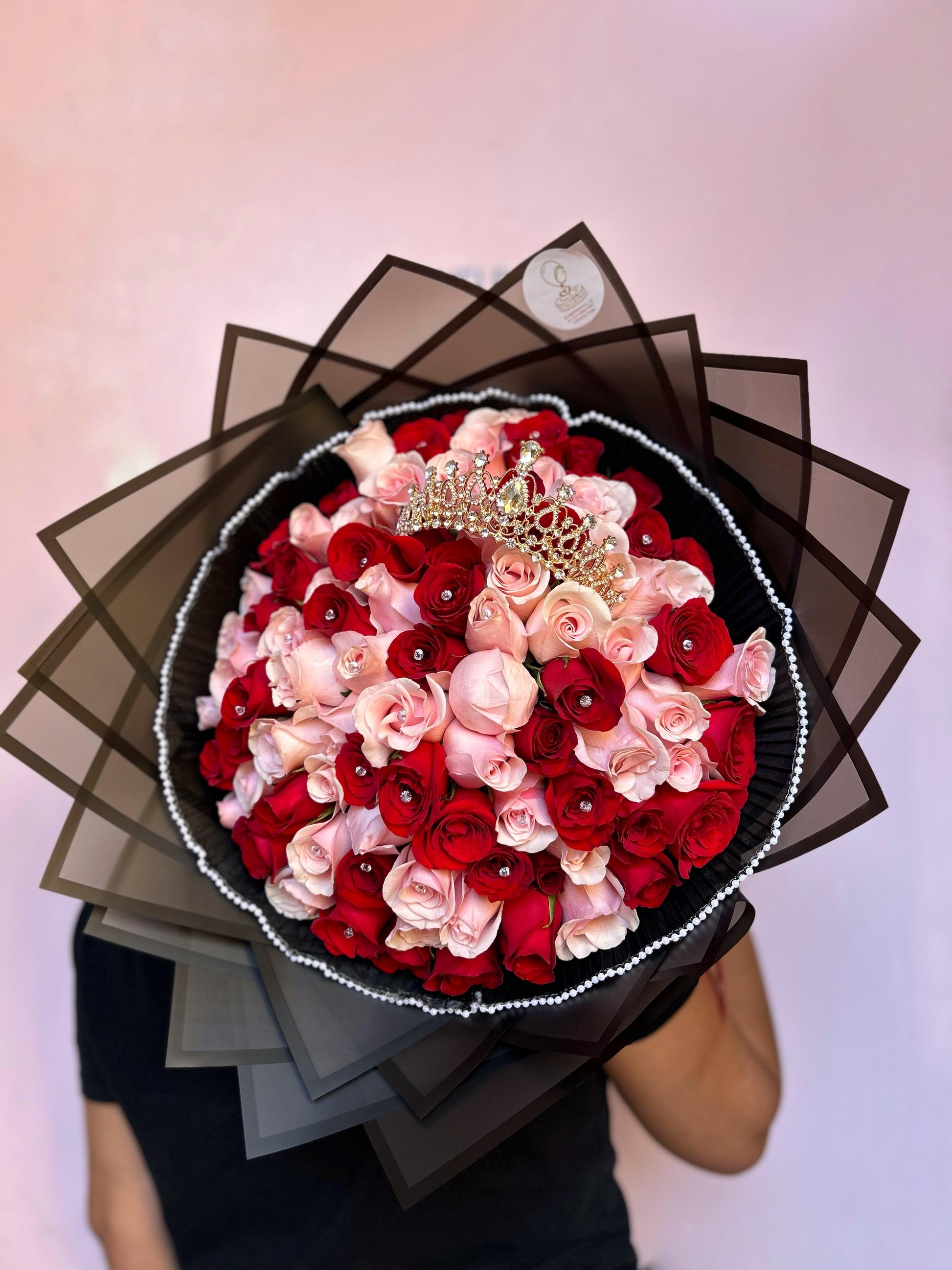 Este es un hermoso arreglo floral compuesto de rosas rojas y rosas rosadas. Con su combinación de colores vibrantes y su elegante diseño, este ramo es perfecto para expresar amor, gratitud o amistad. Sorprende a tus seres queridos con un regalo que les traerá alegría y belleza.